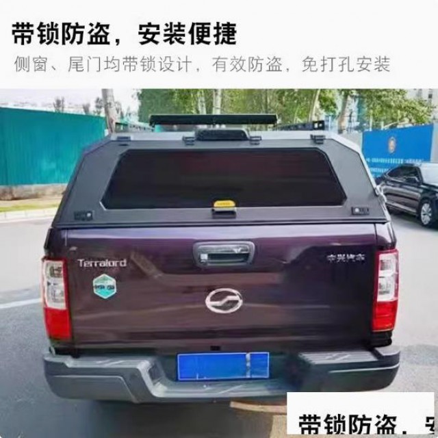 中兴领主皮卡车标箱加长后箱盖高盖铁盖改装件,三开门设计,两侧,尾门可打开。全金属材质,结实耐用。带有液压升降窗盖,便于开合。卡扣安装,免打孔,带锁防盗。