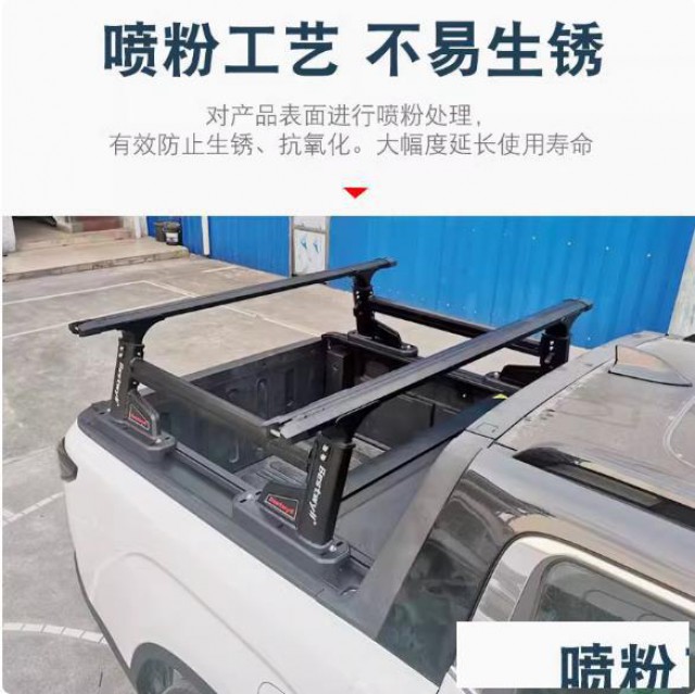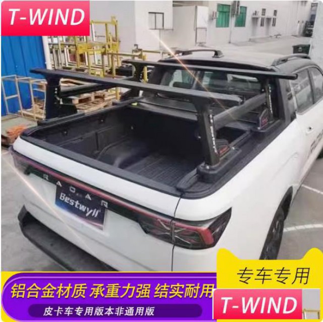雷达RD6皮卡车货箱T型平台支架拓展架改装件,铝合金材质,加厚板材,防腐蚀抗氧化。喷粉工艺,不易生锈。免打孔安装,可搭载车顶箱,车顶框,帐篷等装备。承重力强,方便实用。