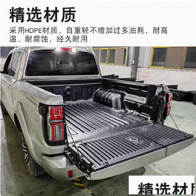 长城山海炮皮卡车货箱宝后箱宝尾箱垫子改装件,采用HDPE耐磨胶材质制成,抗腐蚀,耐酸碱。皮纹设计,加厚板材,黑色百搭款,安装无需打孔,安装简单方便,产品质量有保障。