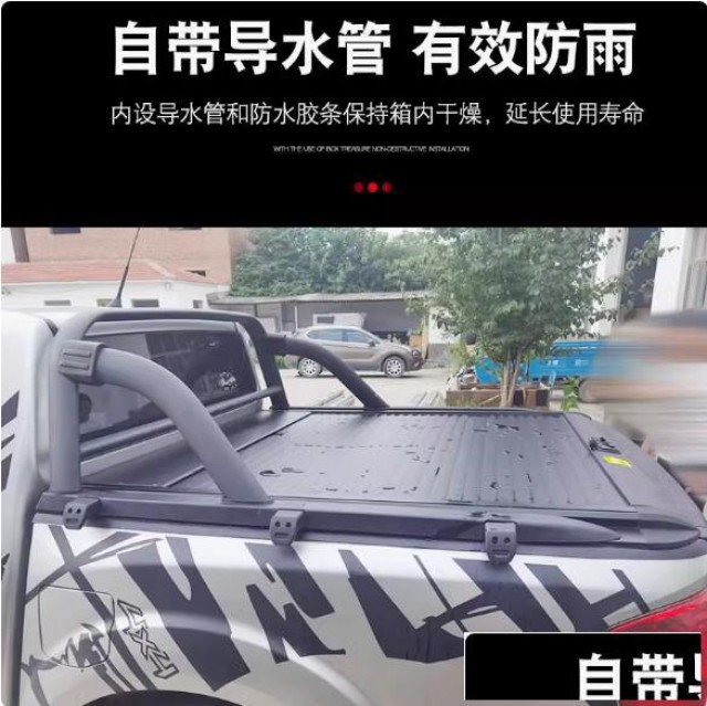 东风锐骐6纳瓦拉皮卡车手动卷帘后箱平盖改装,铝合金材质,加厚板材,承重力强。二挡启停,空间灵活应用。手动卷帘,拉绳辅助,开合方便。内设导水管和防水胶条,安装方便,带锁设计,有效防盗。