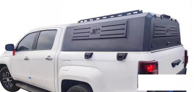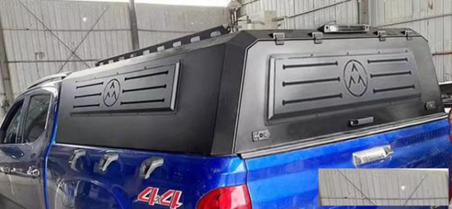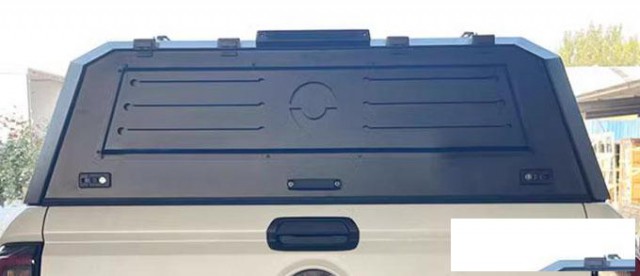 皮卡车整体单开门高盖后箱盖改装件,此款盖子是单开门,只有后门可打开,适用于多款皮卡车型。侧窗不可打开,全封闭款式,不带玻璃。锰钢材质,整体打磨,带有液压杆,便于开启闭合。卡扣固定安装,免打孔,带锁设计,有效防盗,带高位刹车灯,提高行车安全。