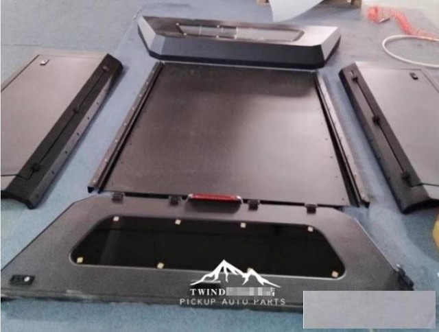 24款大众amarok皮卡车分体三开门高盖后箱盖,锰钢材质,有全封闭,前后玻璃款式可选。电泳防锈处理,出厂自带高位刹车灯,提高行车安全。双侧采用液压撑杆,开合方便。免打孔安装,带锁防盗。