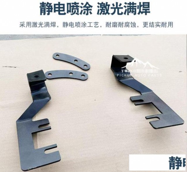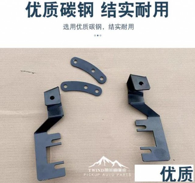 23款浪九游骑侠ranger皮卡车A柱灯架雾灯车灯支架,优质碳钢材质,结实耐用。采用激光满焊,静电喷涂工艺,耐磨耐腐蚀。原车孔位安装,简单便捷。