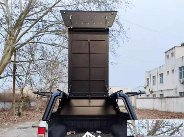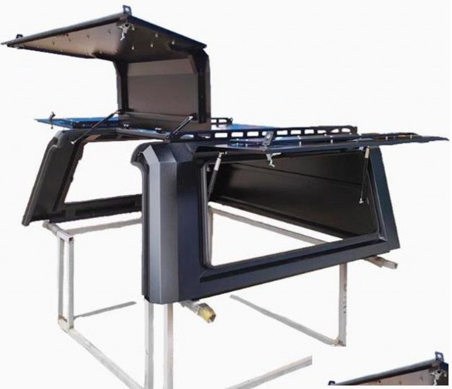 江西五十铃dmax瑞迈铃拓皮卡车连顶开四开门高盖,锰钢材质,整体打磨,防雨防晒。液压升降窗盖,开合方便,连顶开门设计,可直接从盖顶吊装货物。免打孔安装。配有安全锁,安全放心。