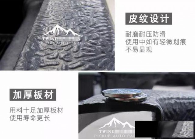 长安猎手皮卡车货箱宝后箱宝尾箱垫子改装件,采用HDPE耐磨胶材质制成,抗腐蚀,耐酸碱。皮纹设计,加厚板材,黑色百搭款,安装无需打孔,安装简单方便,产品质量有保障。