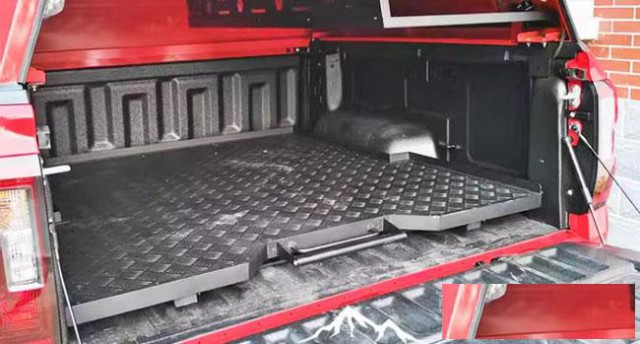 比亚迪鲨鱼皮卡shark皮卡车厢车尾货箱推拉收纳托盘改装件,优质铝合金材质,可伸缩式托盘。直接拉至车尾位置,方便拿取货物。铝合金材质,不易生锈,承重力强。带轴承,推拉顺畅。打孔固定滑道,托盘一周留有固定拉环,实用方便。