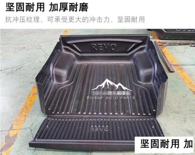16-23款海拉克斯锐沃hilux皮卡车切边货箱宝尾箱垫改装件,黑色百搭款,原车开模,贴合车身。优质HDPE材质,耐磨耐压防滑。加厚板材,坚固耐用。半包边,全包边可选。有效保护原车斗。