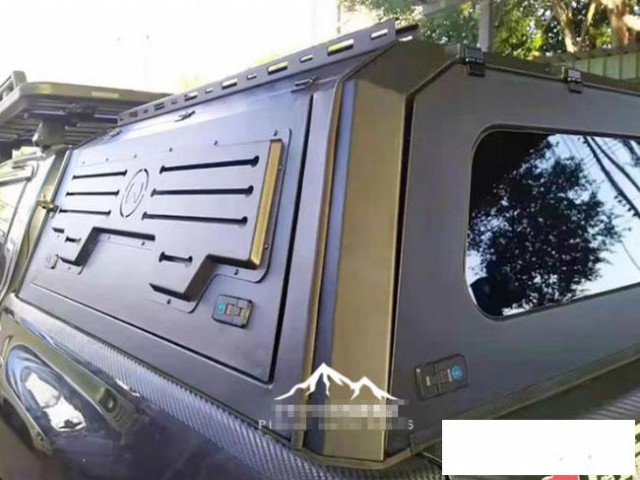 丰田海拉克斯revo rocco皮卡车三开门全封闭高盖后箱盖子,全金属材质,遮阳挡雨,结实耐用。原车数据开模,三开门设计,两侧窗及尾部可打开,带有液压撑杆。安装不打孔,利用卡扣固定。三侧带锁带锁设计,安全可靠。