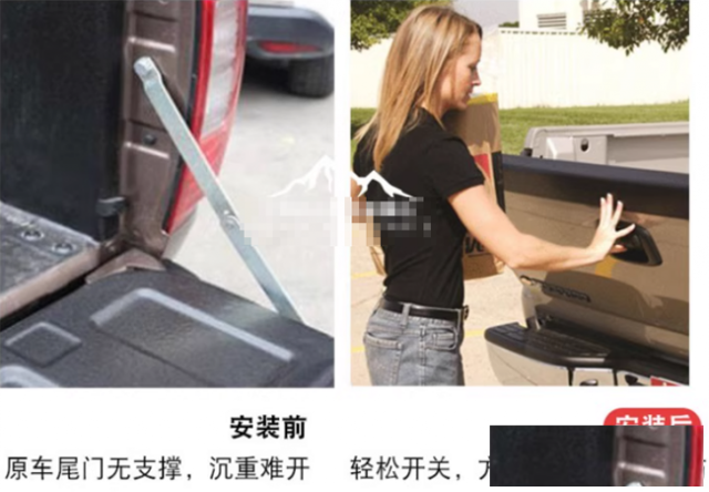 三菱triton皮卡尾门缓降杆缓冲杆液压杆,安装液压杆起到下降时增加阻力作用,使后尾门开合时达到缓升缓降的效果。采用碳钢材质制成,表面不生锈,不漏油。原车开模,不打孔,原车孔位安装。安全助力,轻便省力。