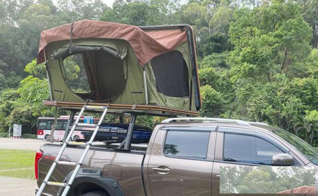 长城炮五十铃皮卡车后箱帐篷露营帐篷装备改装件,牛津布+铝合金材质,展开可变2-3人大空间。带有防蚊网纱,通风透气防蚊虫,防水防晒遮阳。闭合后整体高度不影响通过。