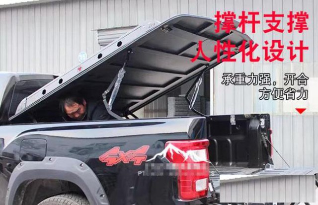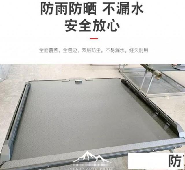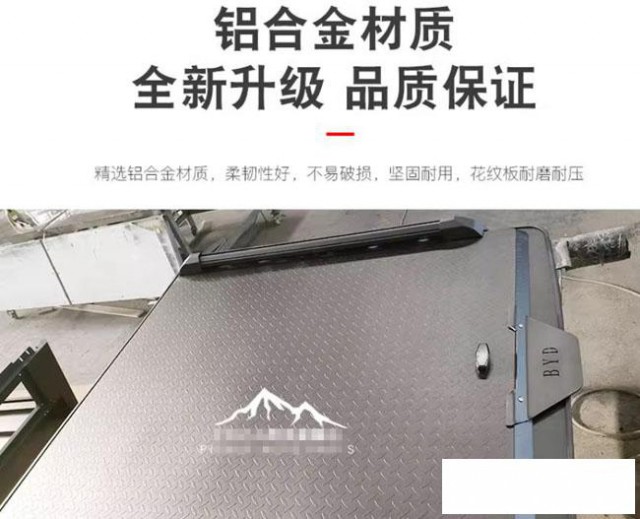比亚迪鲨鱼皮卡车斗后箱盖金属平盖改装件,铝合金材质,防雨防晒,全包边,双层防尘。坚固耐用,不易破损,花纹板耐磨耐压。撑杆支撑,承重力强,开合方便省力,安全防盗。打孔安装,方便快捷。