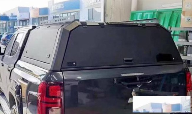 2024款三菱l200皮卡车三开门后箱高盖改装件,原车数据开模,贴合车身。全金属材质,电泳防锈,分体拼装。整体打磨,遮阳挡雨。双侧采用液压撑杆,开合方便。带高位刹车灯,一侧带脚蹬。带锁防盗,安全可靠,免打孔安装。