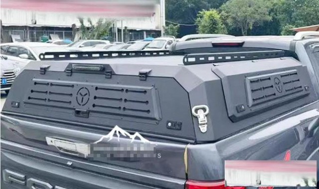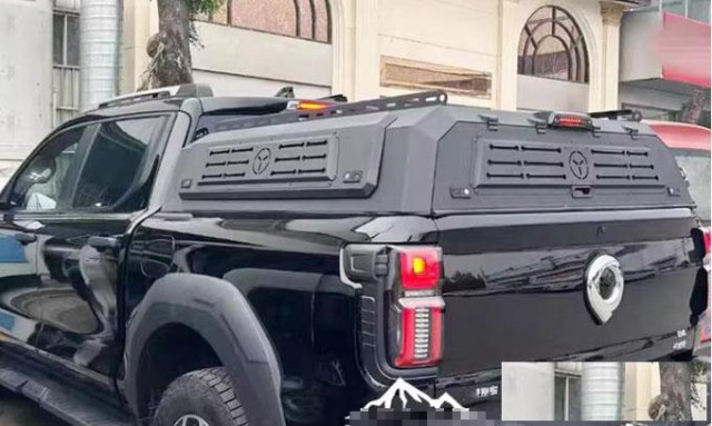 长城炮山海炮加长炮皮卡车半高盖后箱货箱盖,锰钢材质,整体打磨,结实耐用。原车数据开模,半高设计,带高位刹车灯,提高行车安全。采用液压升降窗盖,快速开合。带锁设计,安全可靠。免打孔安装,方便快捷。