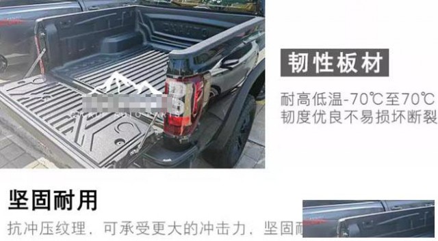 中兴威狮1949皮卡车标箱货箱宝后箱垫子改装件,HDPE材质。采用原车开模设计,贴合度高。满焊工艺,美观又防水。具有抗压耐腐蚀,不易生锈等特点,可有效保护原车漆面。抗冲压纹理,坚固耐用。