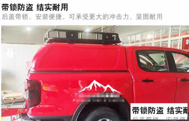 23款游骑侠ranger皮卡车平顶高盖全金属高盖,后盖为全金属材质,壳维护性高,结实耐用。原车数据开模,贴合度高。上次液压撑杆,快速开合,方便省力。尾部配备安全锁,安全放心。