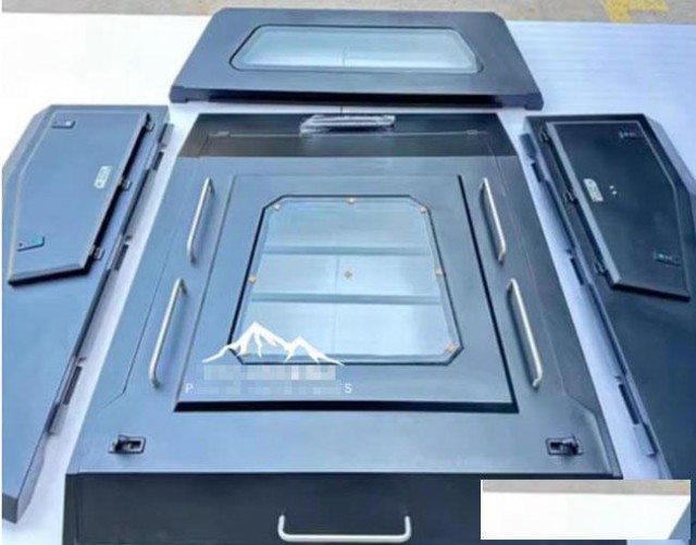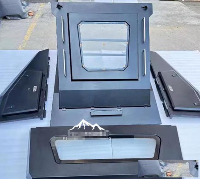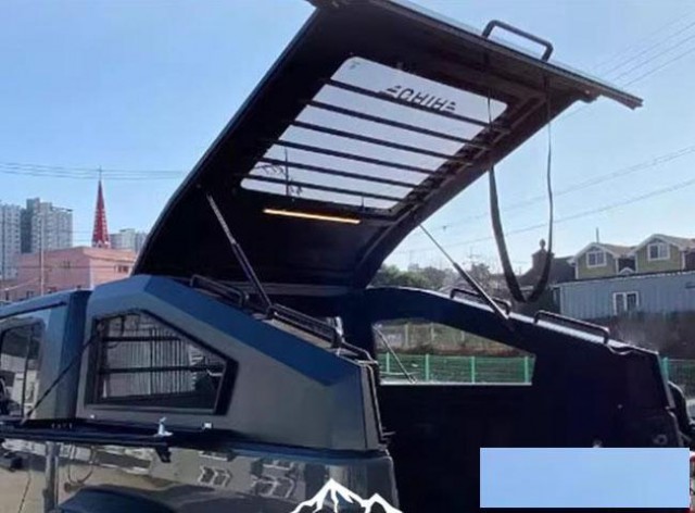 hilux海拉克斯revo/vigo皮卡车锰钢电泳斜盖运动款分体盖,锰钢材质,整体打磨,高温喷塑。液压升降窗盖,快速开合,灵敏流畅。卡扣安装,免打孔。带锁设计,有效防盗,带高位刹车灯,提高行车安全。