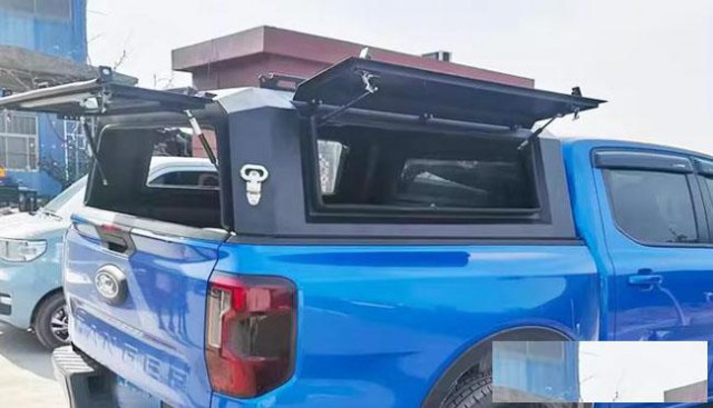 23款游骑侠ranger改装T9皮卡三开门高盖后箱盖改装件,镀锌铁板材质。整体打磨,结实耐用。液压升降窗盖,快速开合。卡扣安装,免打孔,一侧带脚蹬,可登盖顶,带锁设计,有效防盗。带高位刹车灯,提高行车安全。