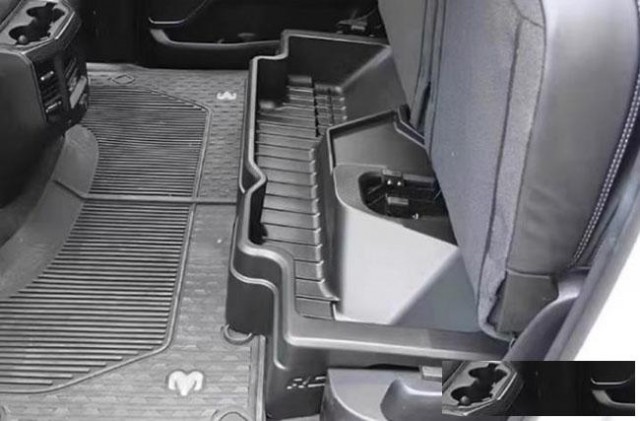 道奇公羊RAM1500霸王龙皮卡后排储物盒收纳盒,优选ABS材质,一体注塑成型打造,厚度升级,防水耐磨。原车位安装,不影响后排放倒使用。可水洗清洁,方便打理。扩展空间,方便收纳。