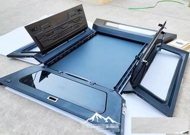 适用于f150猛禽皮卡车后备箱尾箱盖分体电泳三开门高盖,全金属材质,结实耐用。整体打磨,双侧预留脚蹬安装。全冲压装饰板,液压升降。出厂带有高位刹车灯,提高行车安全。带锁设计,安全放心,免打孔安装,方便实用。