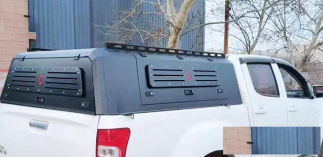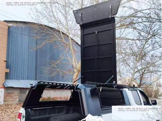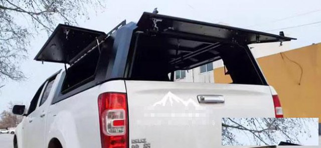 江西五十铃dmax瑞迈铃拓皮卡车连顶开四开门后箱高盖改装件,锰钢材质,整体打磨。遮阳挡雨,结实耐用。原车数据开模,贴合原车。带有液压升降窗盖,开合灵敏。免打孔安装,卡扣固定,方便快捷,带锁设计,安全放心。
