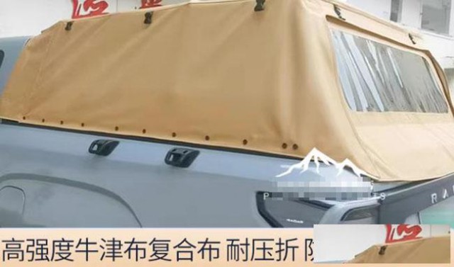 雷达RD5/6金刚地平线新能源皮卡车软高盖牛津布高蓬布料后盖,牛津布复合布材质制成,耐压折,防水防雨。骨架底板是加厚碳钢材质,蓬顶支架是不锈钢材质。固定夹扣采用铝合金材质,坚固。软高盖不用时,可折叠。带有魔术贴,拉链进行密闭加固,拆装方便。
