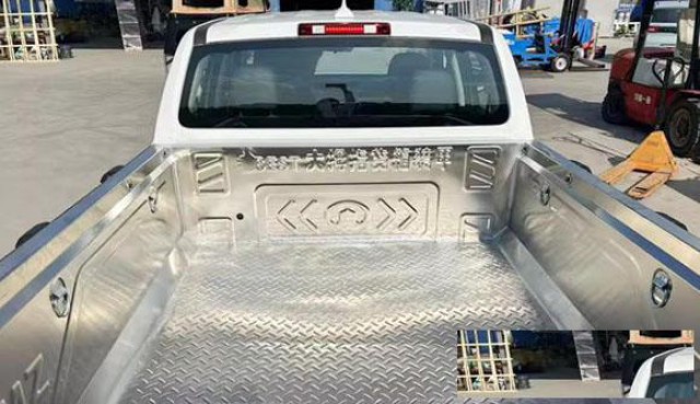 25年新款江铃宝典平底加长皮卡车不锈钢后箱宝货箱宝改装,不锈钢板材,高温不变形。激光满焊工艺,原车开模,贴合度高。自带绑绳挂钩,方便实用。耐磨损耐腐蚀,不易生锈,美观又实用。有效保护新车漆面。