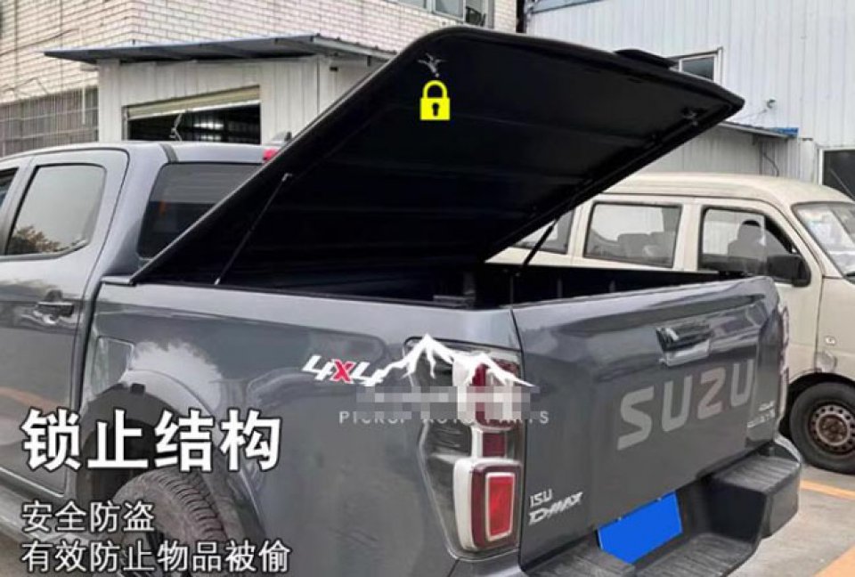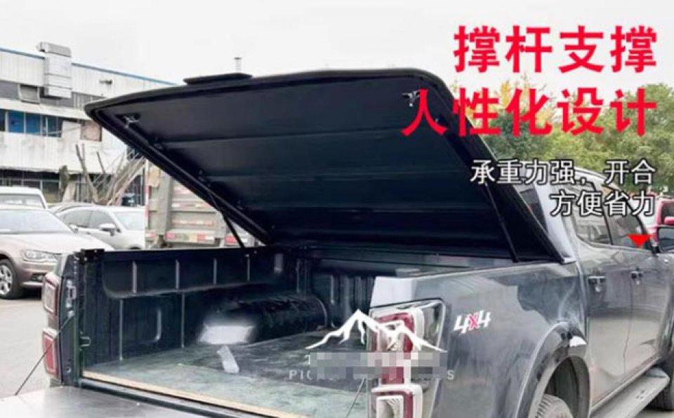 五十铃dmax瑞迈铃拓皮卡车后箱平盖硬板盖改装件,铝合金材质,防雨防晒,不漏水。撑杆支撑,承重力强,开合方便省力。尾部带锁,安全防盗。打孔安装,安装方便快捷。