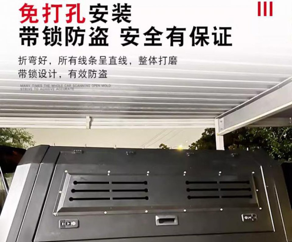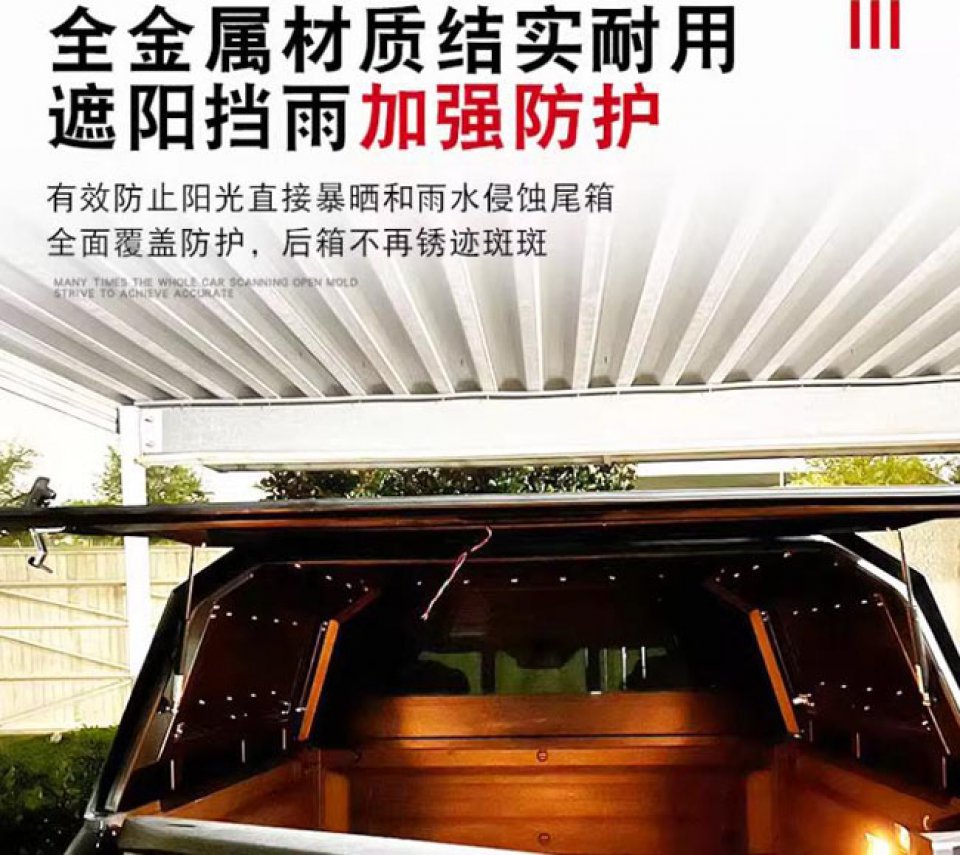 本田皮卡车honda皮卡车三开门后箱盖高盖改装件,全金属材质,结实耐用。整体打磨,原车数据开模,遮阳挡雨,保护车斗内物品安全。出厂带高位刹车灯,提高行车安全。双侧采用液压撑杆,开合方便。免打孔安装,带锁防盗。