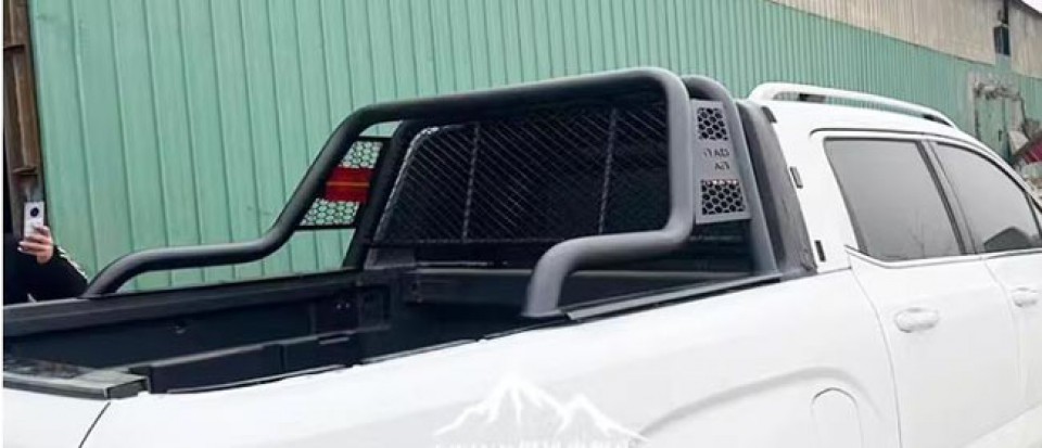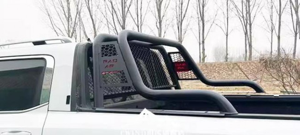 雷达RD5/RD6金刚皮卡车龙门架防滚架驾驶室玻璃防护栏,镀锌铁管材质,采用激光满焊,高温喷粉工艺制成,防腐蚀性强,经久耐用。安装后增强车身立体感,提升档次,美观实用。贴合原车设计,打孔安装。