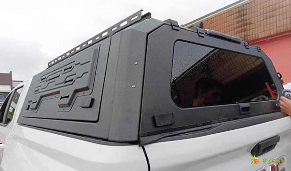 雪佛兰GMC皮卡车二代三开门后箱盖尾盖改装件,全金属材质制成,原车数据开模。全冲压装饰板,整体打磨,液压升降。一侧带脚蹬,可登盖顶。出厂带高位刹车灯,提高行车安全。免打孔安装,带锁设计,有效防盗。