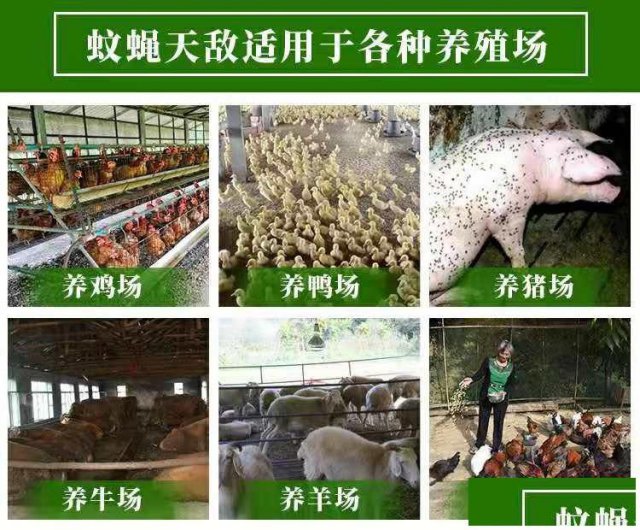 或者药撒在盆里,盆放高处,既方便、还省事。鸡猪猫狗碰不到,方圆几米的苍蝇会自己来吃,蚊蝇天敌不会吸引十米以外的苍蝇,不用担心别人家的苍蝇来串门。苍蝇跟人的习性很像,早起饿得半死,逮什么吃什么,包括晚上黄昏那会也是饿得很,这两个时间段投放本品合适。即:早晚5-7点是适宜的投药时间。