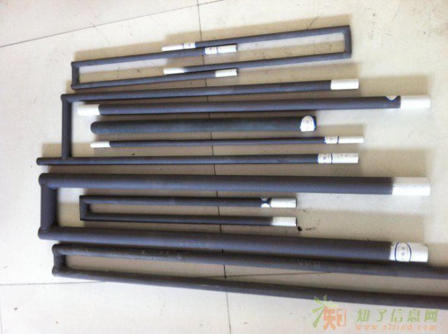 硅碳棒电热元件是选用优质绿色碳化硅为主要原料,经加工制坯、高温硅化、再结晶而成的棒管状非金属高温电热元件。该元件与金属电热元件相比,具有使用温度高(可达1520℃)、抗氧化、耐腐蚀、寿命长、变形微、安装维修方便等特点。硅碳棒产品有粗端部、等直径硅碳棒,类型有直型棒、U型棒、三相棒、五节型棒、槽型棒、单螺纹棒、双螺纹棒等各种规格型号,硅碳棒的直径范围为Φ8-Φ60mm。