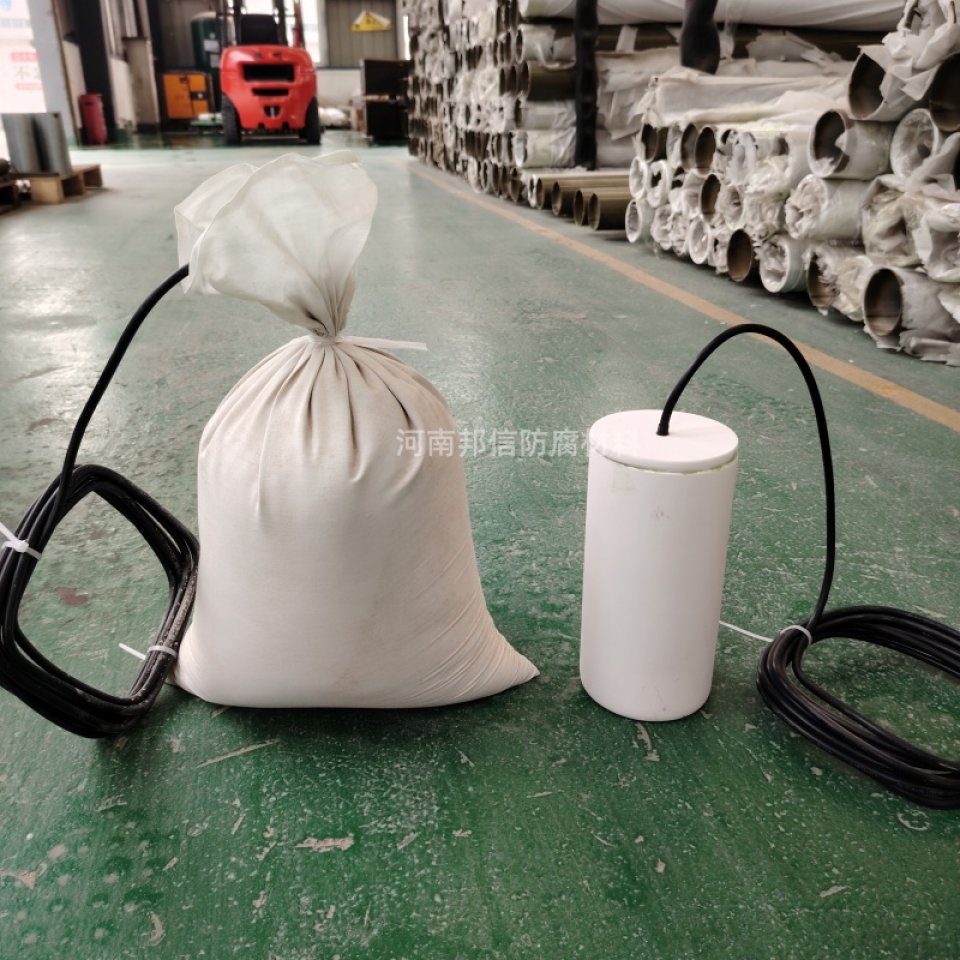 核心特性:镁合金阳极标准电极电位达 - 2.37V,驱动电压高,电流效率约 50%,理论电容量 2210A・h/kg,单块阳极实际有效输出电流 1.5 - 2.5A,适合小范围精准保护。套装的填包料已预包装,现场无需调配,安装便捷,且重量适中,便于在空间受限的管道分支、阀门附近等区域施工。但它寿命较短,理论寿命仅 5 - 8 年,且不适用于海水等高盐分环境,否则会加速腐蚀失效。