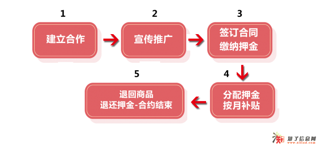 4.销售商与公司按约定比例分配押金,销售商负责提供商品给消费者,公司按月补贴给客户,合同期满补贴押金100%,商户把押金退给客户;